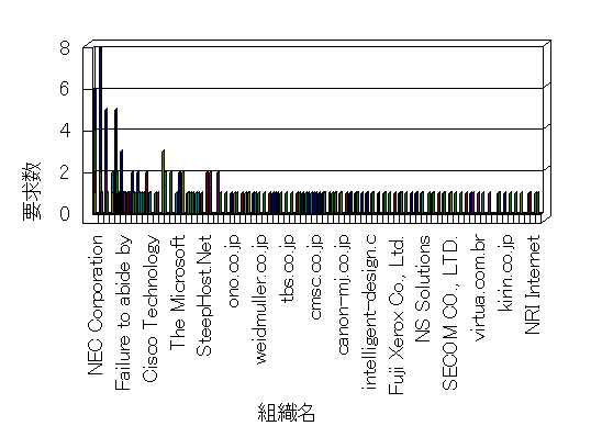 組織ユーザーにインターネット接続を提供する、商用または非営利団体、学術・行政機関などの、インターネット ドメイン で識別される団体や組織です。Microsoft Site Server Analysis は同じ組織に登録されたすべてのドメインを 1 つの組織としてグループ化します。ドメインがデータベースで使用できない場合は、1 つのインターネット ドメインが 1 つの組織を識別するのに使用されます。