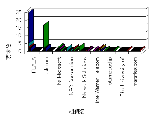 組織ユーザーにインターネット接続を提供する、商用または非営利団体、学術・行政機関などの、インターネット ドメイン で識別される団体や組織です。Microsoft Site Server Analysis は同じ組織に登録されたすべてのドメインを 1 つの組織としてグループ化します。ドメインがデータベースで使用できない場合は、1 つのインターネット ドメインが 1 つの組織を識別するのに使用されます。