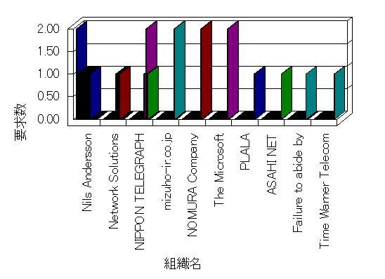 組織ユーザーにインターネット接続を提供する、商用または非営利団体、学術・行政機関などの、インターネット ドメイン で識別される団体や組織です。Microsoft Site Server Analysis は同じ組織に登録されたすべてのドメインを 1 つの組織としてグループ化します。ドメインがデータベースで使用できない場合は、1 つのインターネット ドメインが 1 つの組織を識別するのに使用されます。