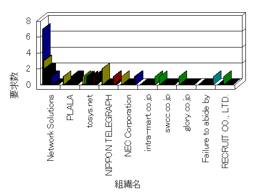 組織ユーザーにインターネット接続を提供する、商用または非営利団体、学術・行政機関などの、インターネット ドメイン で識別される団体や組織です。Microsoft Site Server Analysis は同じ組織に登録されたすべてのドメインを 1 つの組織としてグループ化します。ドメインがデータベースで使用できない場合は、1 つのインターネット ドメインが 1 つの組織を識別するのに使用されます。