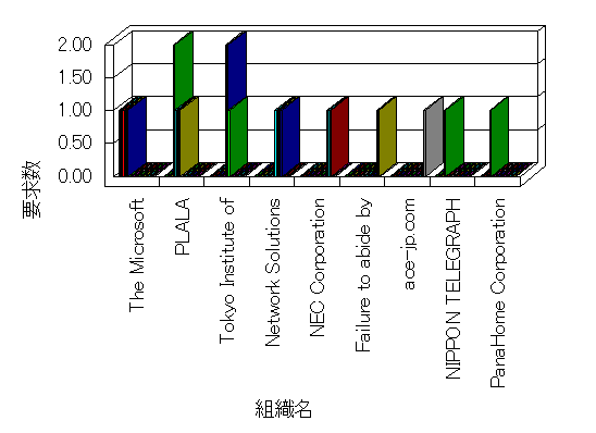 組織ユーザーにインターネット接続を提供する、商用または非営利団体、学術・行政機関などの、インターネット ドメイン で識別される団体や組織です。Microsoft Site Server Analysis は同じ組織に登録されたすべてのドメインを 1 つの組織としてグループ化します。ドメインがデータベースで使用できない場合は、1 つのインターネット ドメインが 1 つの組織を識別するのに使用されます。