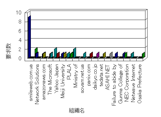 参照組織のサイトには、このサイトにリンクするページがあります。グラフでは、このサイトへのアクセス数に基づいた、上位 10 組織を示します。