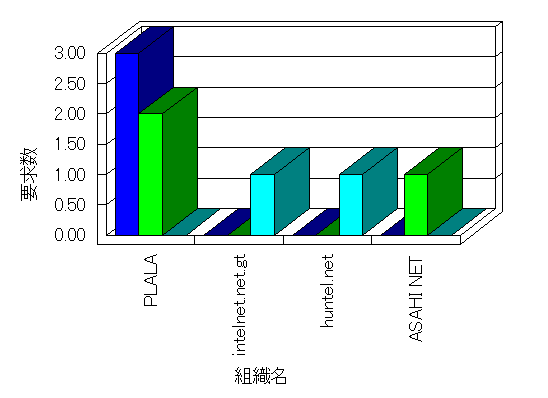 要求コンテンツの取得が正常に行われた任意のヒット です。ヒットと違って、要求はコンテンツとユーザーの挙動に関係しています。例えば、ユーザーがある HTML ページを要求して、そのページが 3 つのイメージを含む場合、Web サーバーは要求されたページの他に、そのページが含む 3 つのイメージ ファイル、およびいくつかの他の要素もログに付け加えるかもしれませんが、Analysis はこれらをあわせて 1 つのユーザーからの要求としてカウントします。